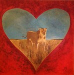 2010Een kado voor mijn moeder. De koffie (die altijd klaar staat) is verwerkt in het rode hart, er staat tekst in de koffie geschreven en de welpjes bij de leeuw maken het verhaal, dat mijn moeder thuis heeft liggen, compleet.